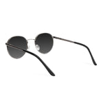Óculos de metal titanium leve e discreto com design redondo clássico. Possui plaquetas flexíveis de silicone e ponteira de acetato na haste que permite se adaptar bem a diferentes rostos e narizes.