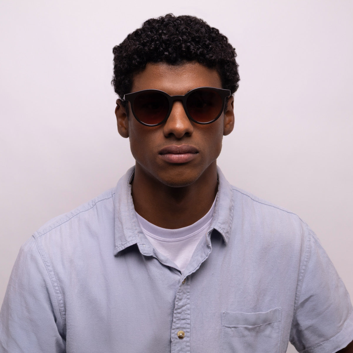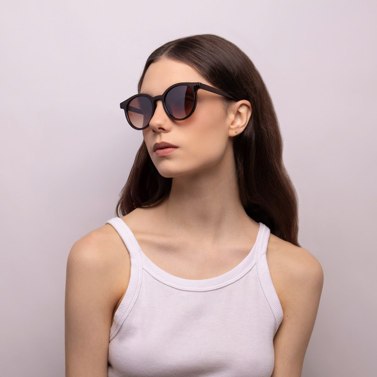 Modelo redondo clássico em tamanho grande com espessura grossa que proporcionam um visual retro-chic. Ideal para rostos médios e grandes.