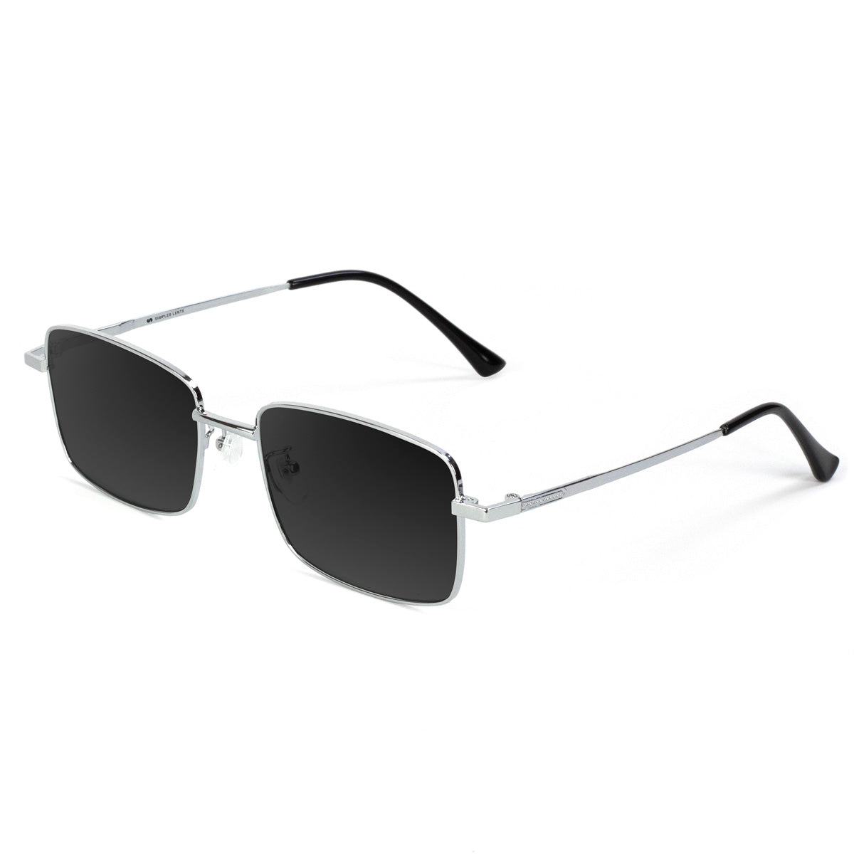 Óculos de metal titanium leve e discreto com design quadrado clássico. Possui plaquetas flexíveis de silicone e ponteira de acetato na haste que permite se adaptar bem a diferentes rostos e narizes.