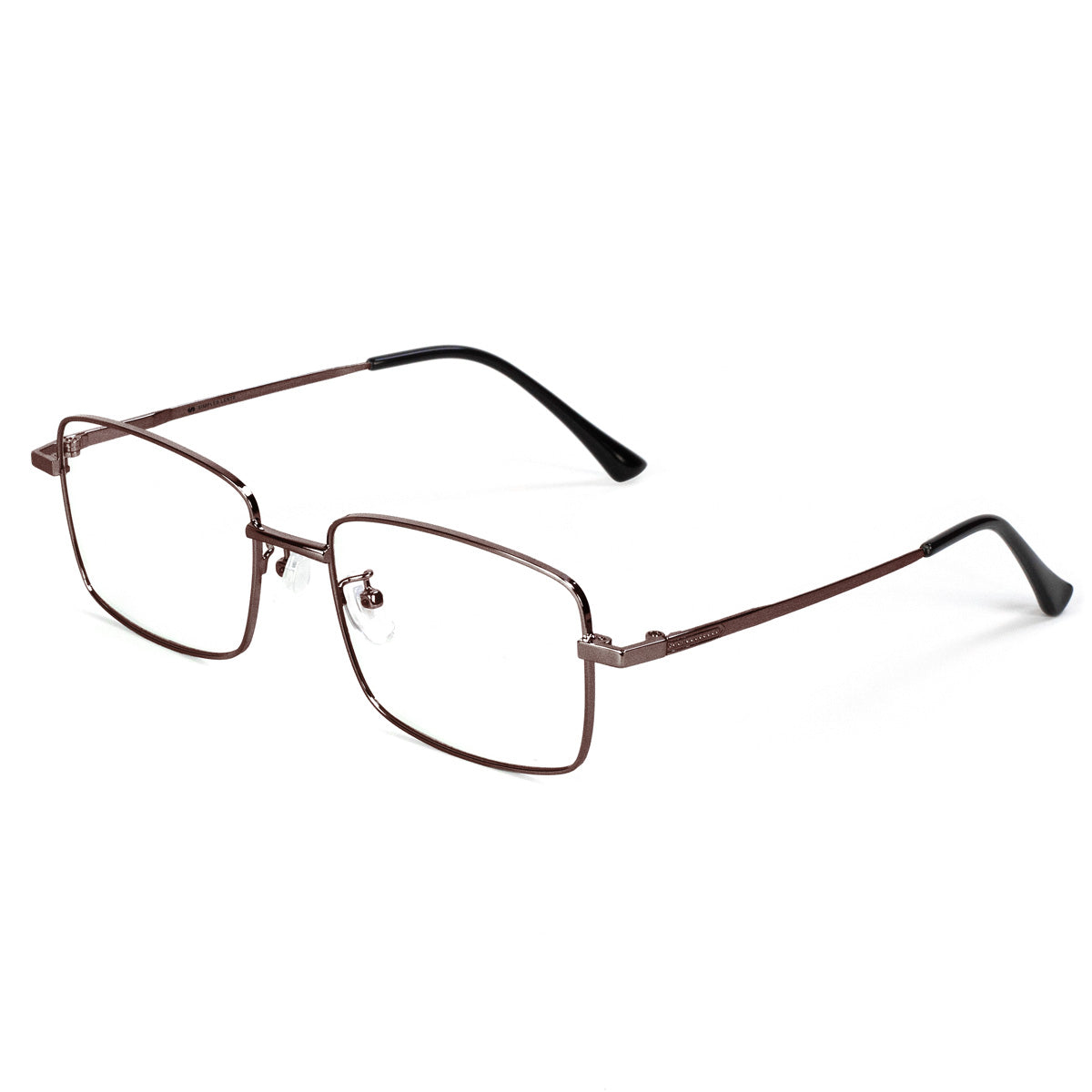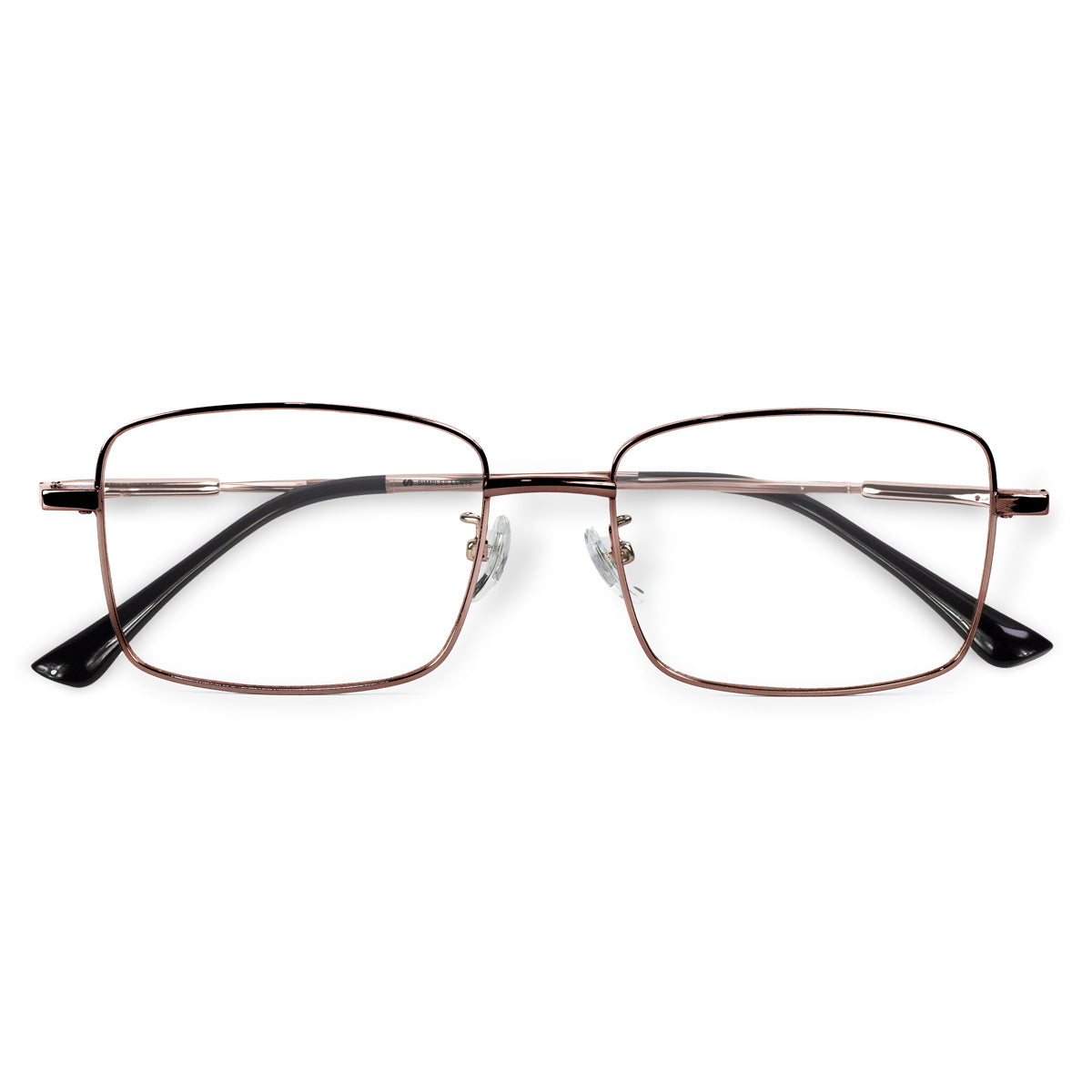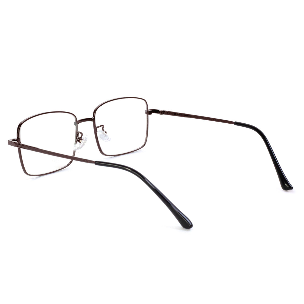 Óculos de metal titanium leve e discreto com design quadrado clássico. Possui plaquetas flexíveis de silicone e ponteira de acetato na haste que permite se adaptar bem a diferentes rostos e narizes.