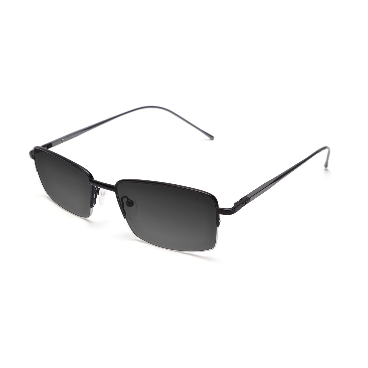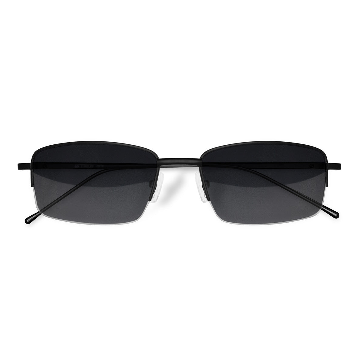 Óculos de meio aro com armação em metal, em formato retangular e tamanho médio, projetado para unir leveza e modernidade. Suas hastes possuem ponteiras em acetato, e as plaquetas de silicone são ajustáveis, oferecendo um encaixe confortável e adaptável a diferentes formatos de rosto. Ideal para quem busca um acessório prático e elegante, que combina discrição e versatilidade no dia a dia.