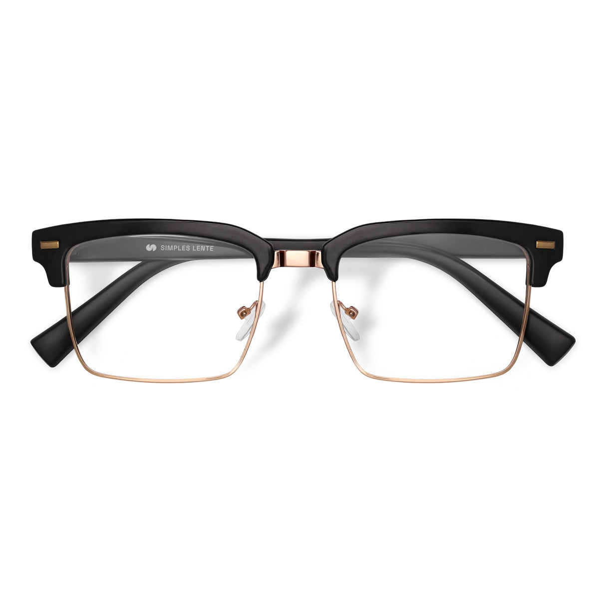 Acetato com Metal Quadrado DM4 Preto Aro Dourado