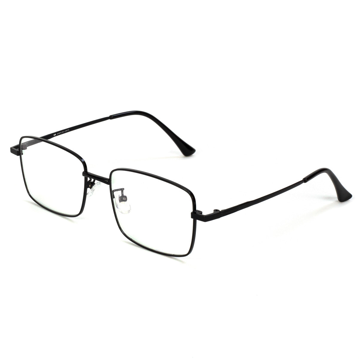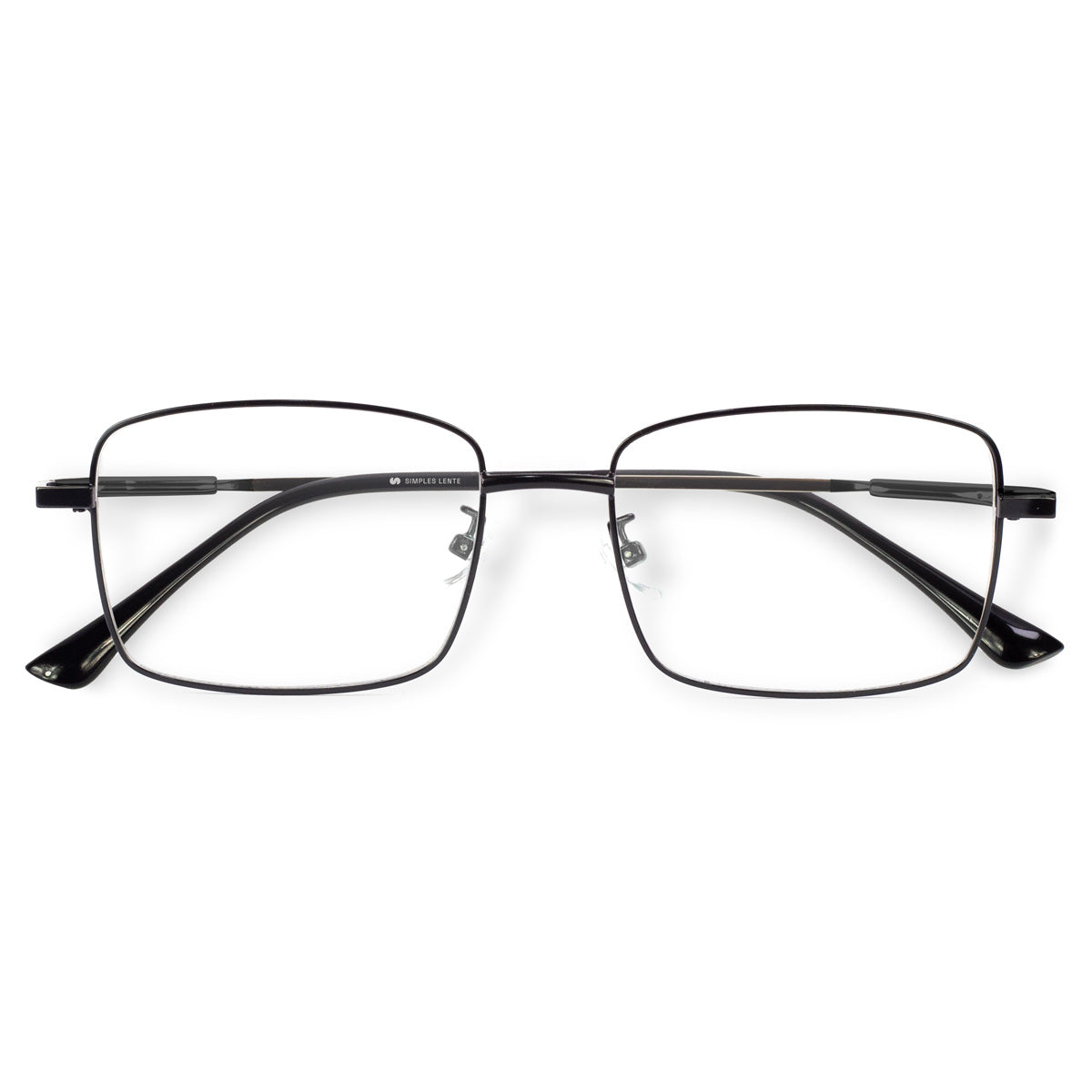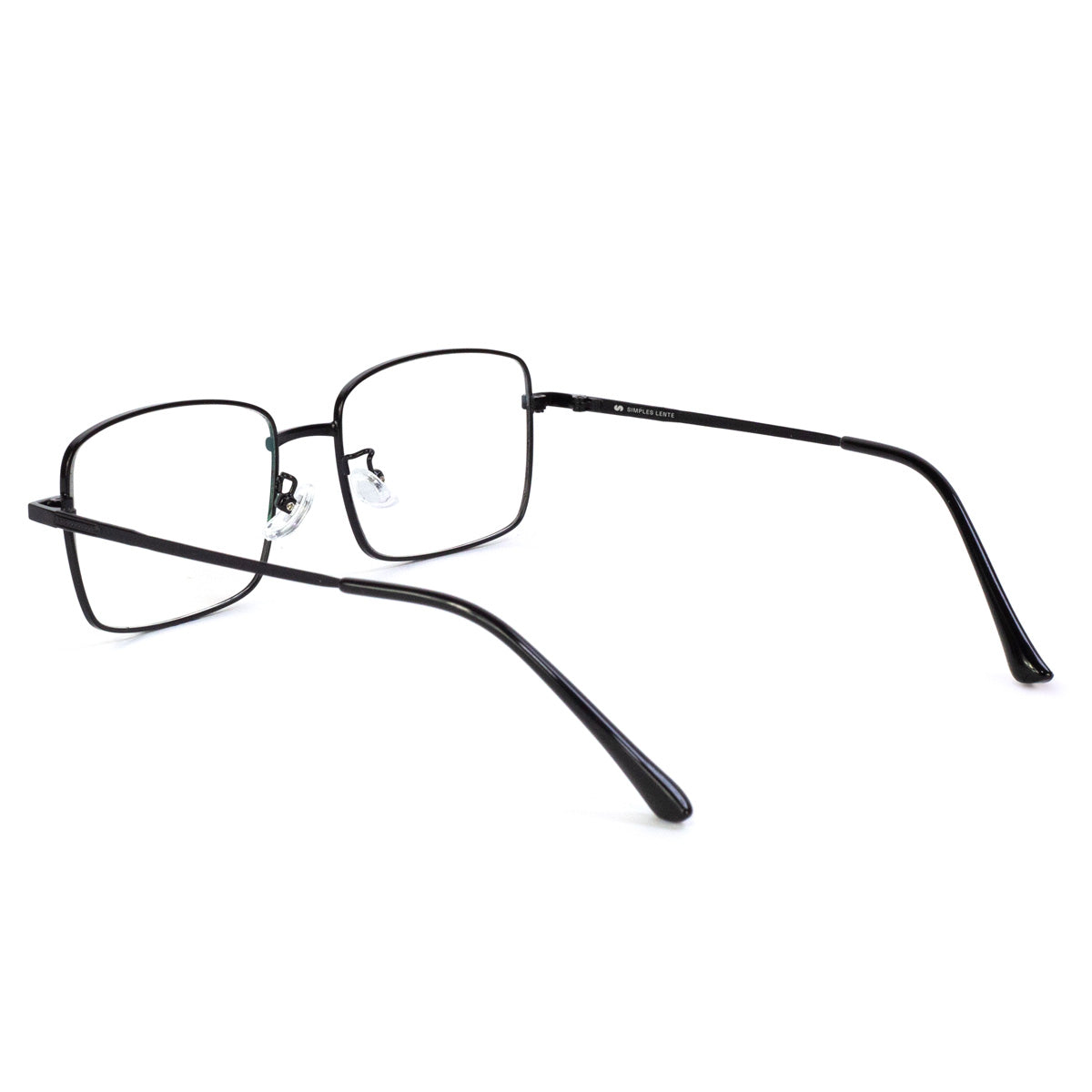 Óculos de metal titanium leve e discreto com design quadrado clássico. Possui plaquetas flexíveis de silicone e ponteira de acetato na haste que permite se adaptar bem a diferentes rostos e narizes.