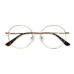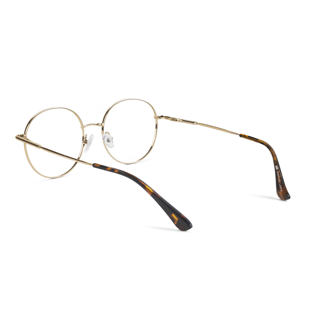 Óculos em metal titânio leve e sofisticado, com design redondo clássico e atemporal. Equipado com plaquetas flexíveis de silicone e ponteiras de acetato nas hastes, oferece excelente adaptabilidade e conforto para diversos tipos de rosto e formatos de nariz.