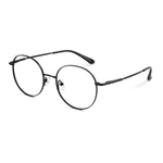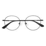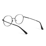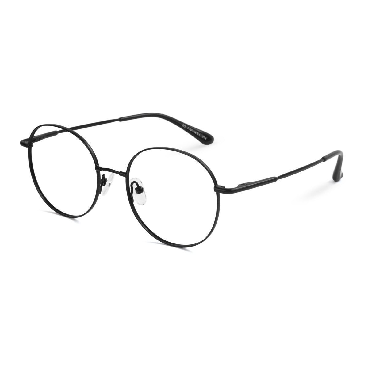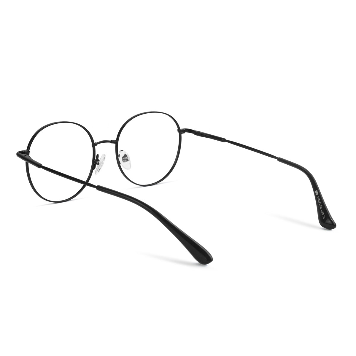 Óculos em metal titânio leve e sofisticado, com design redondo clássico e atemporal. Equipado com plaquetas flexíveis de silicone e ponteiras de acetato nas hastes, oferece excelente adaptabilidade e conforto para diversos tipos de rosto e formatos de nariz.