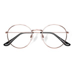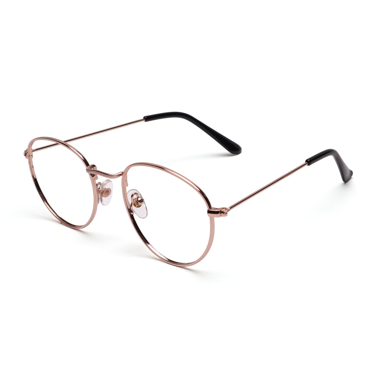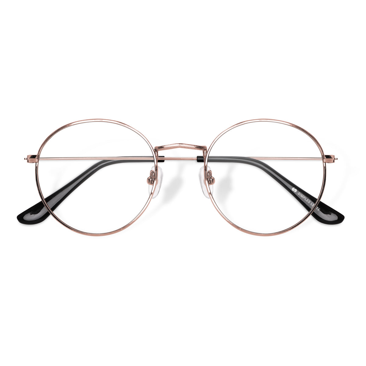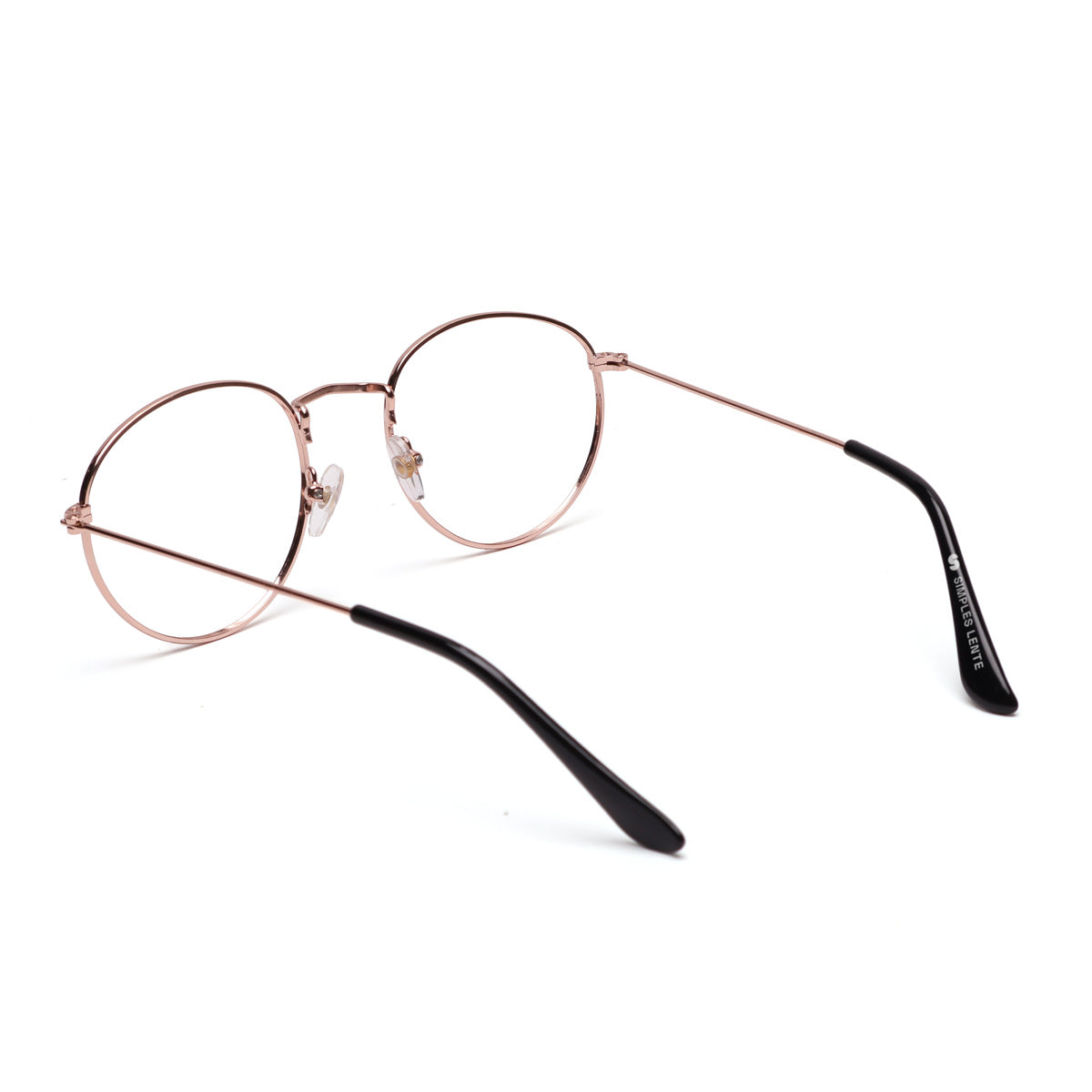Óculos em metal leve e resistente, com design redondo clássico e atemporal. Equipado com plaquetas flexíveis de silicone e ponteiras de acetato nas hastes, oferece excelente adaptabilidade e conforto para diversos tipos de rosto e formatos de nariz.