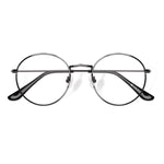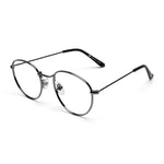 Óculos em metal leve e resistente, com design redondo clássico e atemporal. Equipado com plaquetas flexíveis de silicone e ponteiras de acetato nas hastes, oferece excelente adaptabilidade e conforto para diversos tipos de rosto e formatos de nariz.
