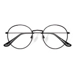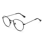 Óculos em metal leve e resistente, com design redondo clássico e atemporal. Equipado com plaquetas flexíveis de silicone e ponteiras de acetato nas hastes, oferece excelente adaptabilidade e conforto para diversos tipos de rosto e formatos de nariz.