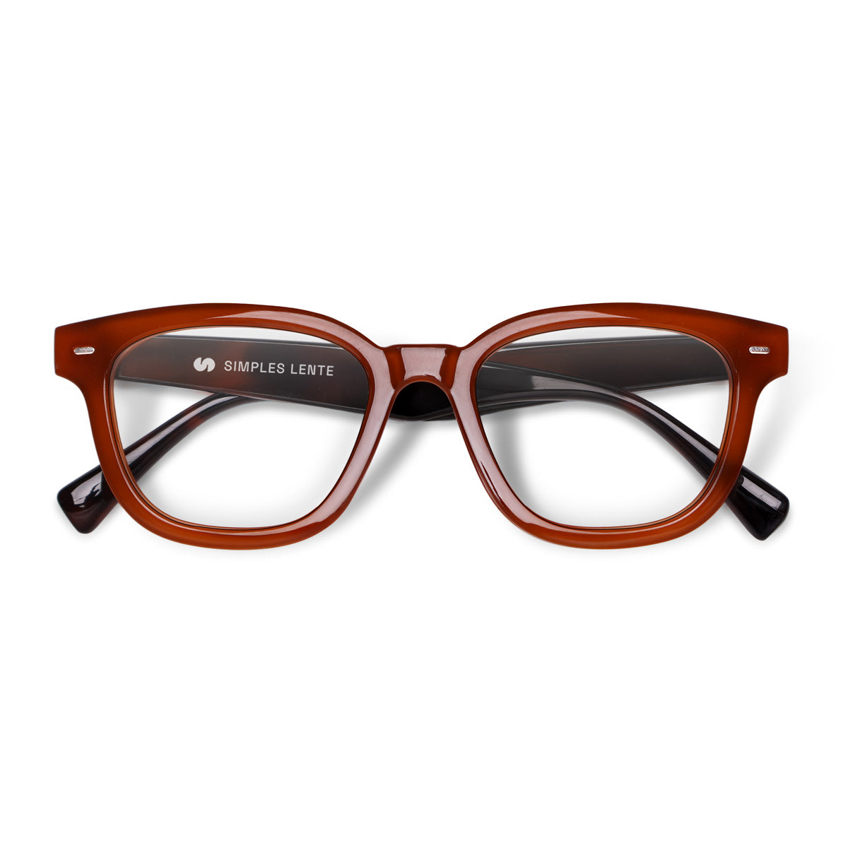 Óculos Quadrado Médio D5 Caramelo em modelo com rosto Médio.