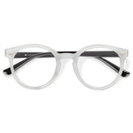 Modelo semi-arredondado de design clássico, em tamanho grande e com estrutura de alta espessura, proporcionando um visual retrô-chic sofisticado. Ideal para quem busca elegância atemporal e conforto, especialmente em rostos maiores.