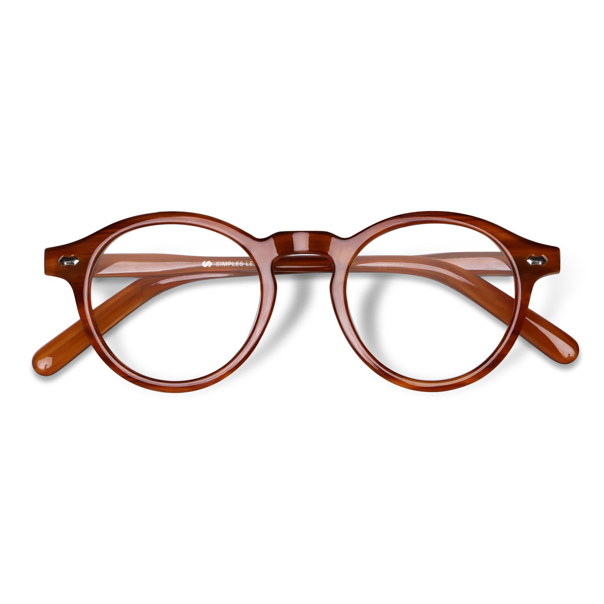 Óculos Redondo Médio B13 Caramelo em modelo com rosto médio.