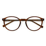 Design redondo clássico em tamanho médio com espessura fina e leve. Ideal para rostos médios e grandes.