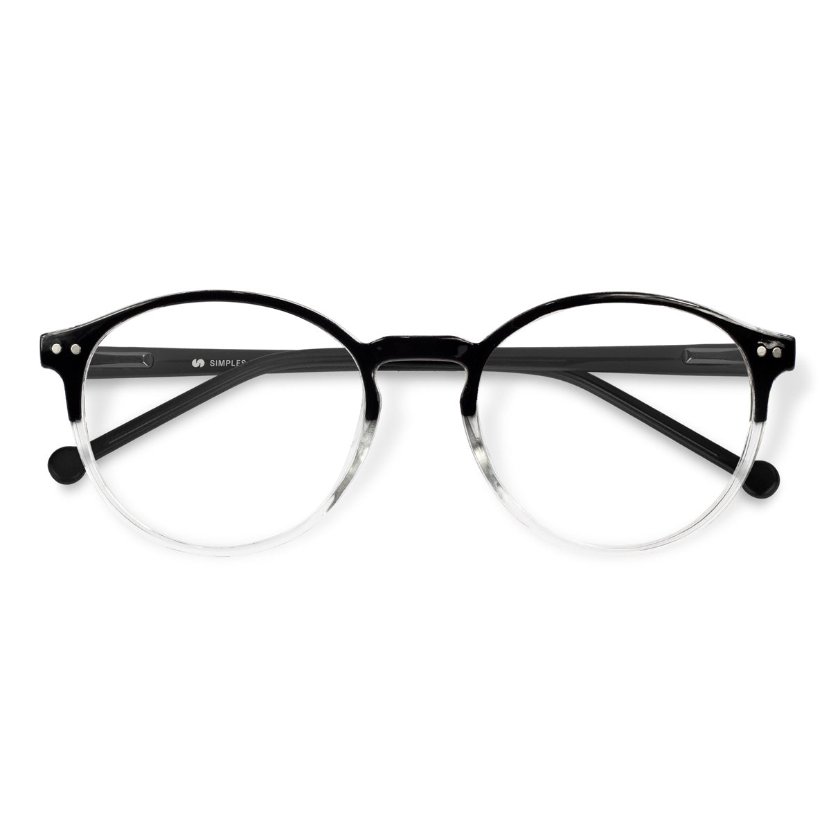 Design redondo clássico em tamanho médio com espessura fina e leve. Ideal para rostos médios e grandes.