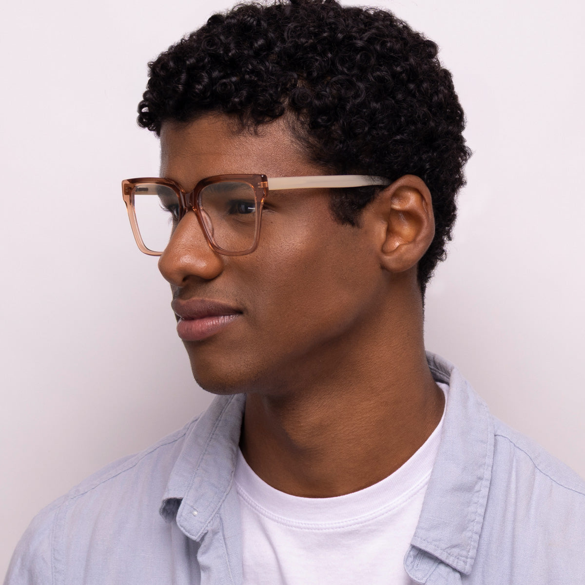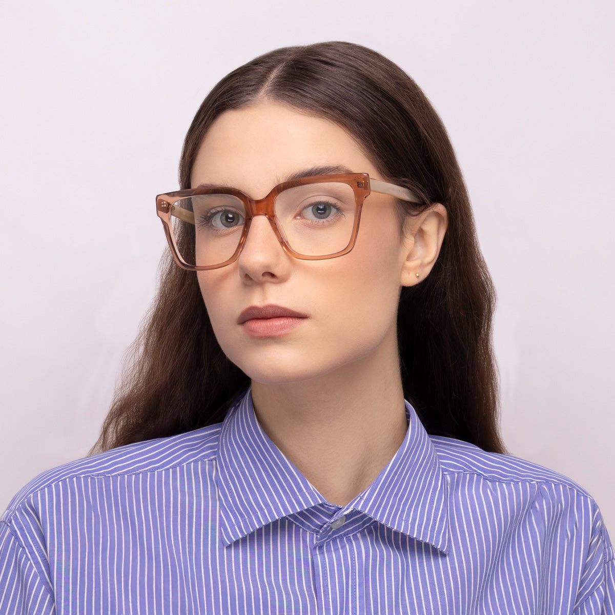 Óculos Quadrado Grande D9 Champanhe em modelo com rosto médio.