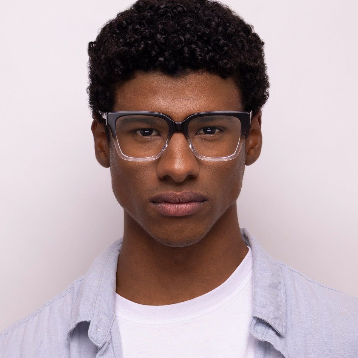 Óculos Quadrado Grande D9 Preto Degrade em modelo com rosto médio.
