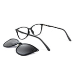 Design geométrico moderno com clip-on que transforma seus óculos de grau em óculos solar