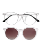 Este modelo de óculos apresenta um design redondo em tamanho grande, ideal para quem prefere armações com mais presença. Acompanha clip-on solar com encaixe magnético, que transforma seus óculos de grau em óculos escuros em segundos. Versátil e funcional, é a escolha perfeita para quem busca conforto, praticidade e um visual atemporal com personalidade.