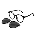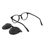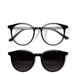 Este modelo de óculos apresenta um design redondo em tamanho grande, ideal para quem prefere armações com mais presença. Acompanha clip-on solar com encaixe magnético, que transforma seus óculos de grau em óculos escuros em segundos. Versátil e funcional, é a escolha perfeita para quem busca conforto, praticidade e um visual atemporal com personalidade.
