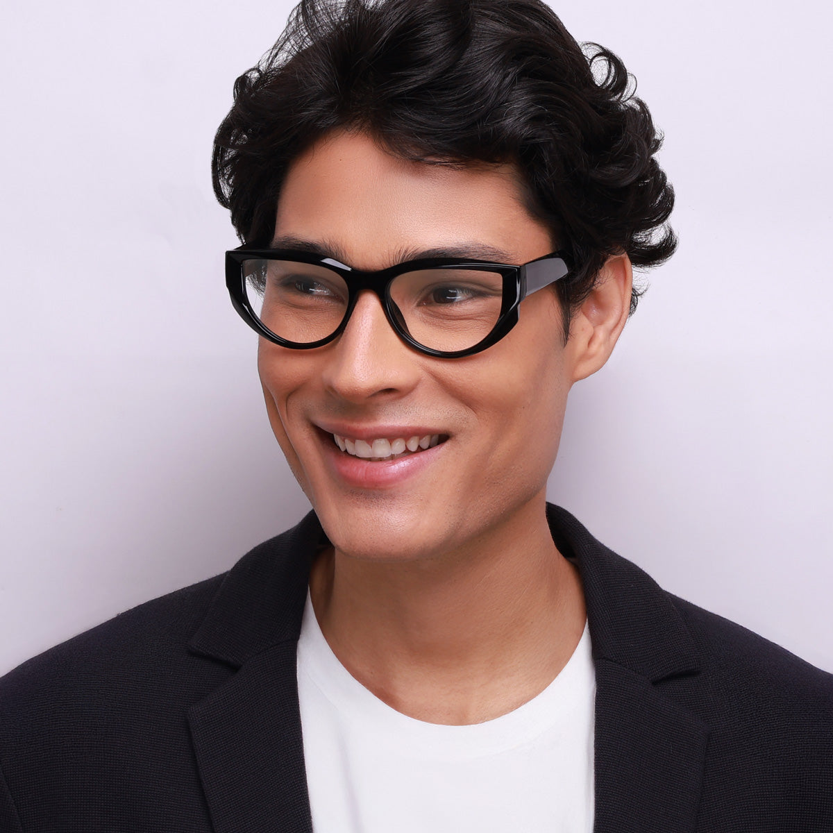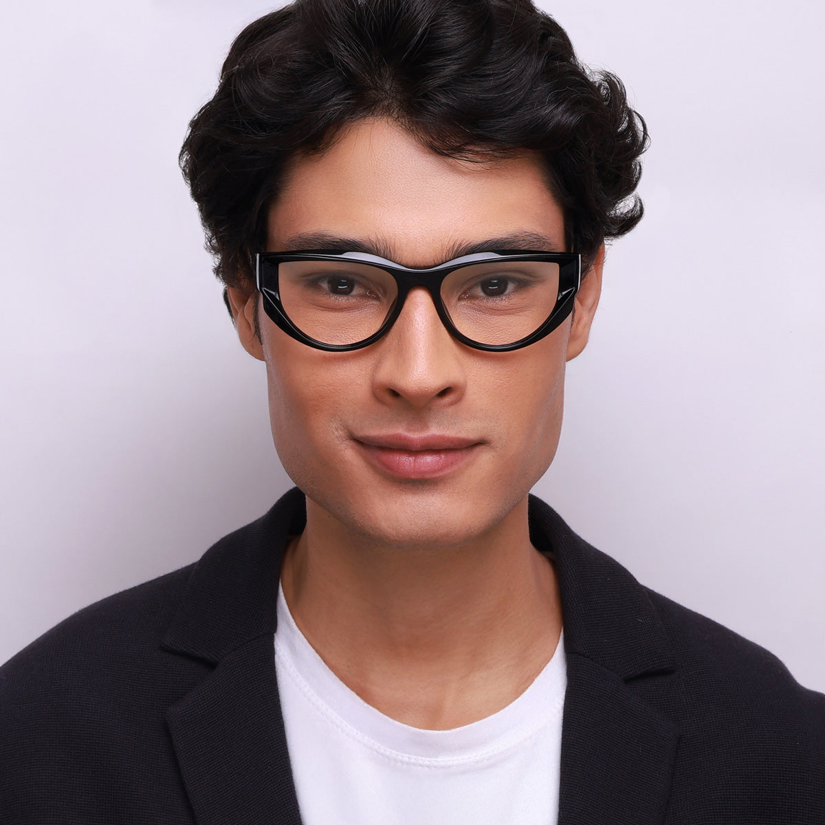 Óculos Geométrico G23 Preto em modelo com rosto médio.