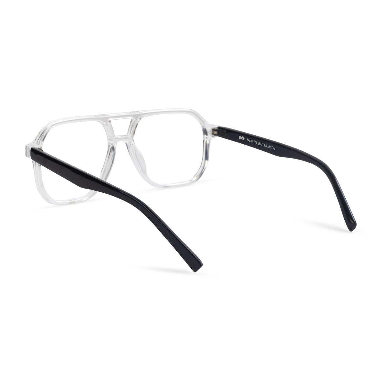 Formato aviador ampliado com linhas retas e um aro mais robusto, que adiciona personalidade e sofisticação. Esses óculos são perfeitos para rostos médios a grandes, proporcionando um ajuste confortável e elegante em diferentes formatos de rosto. Uma combinação refinada que integra o clássico, resultando em uma peça distintiva.