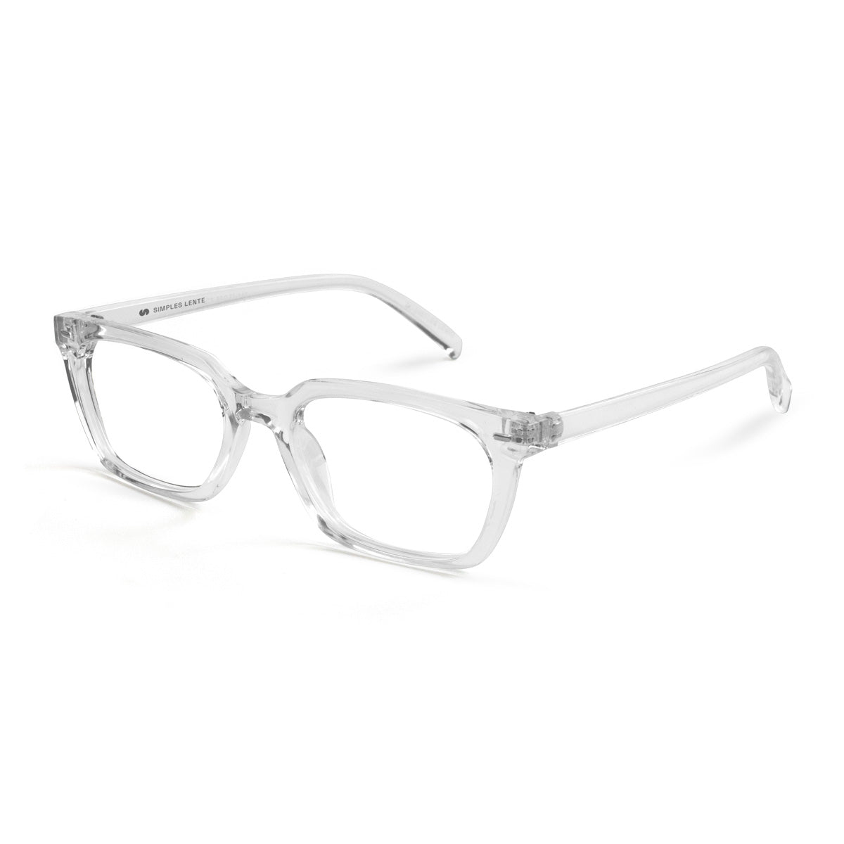 Cada par de óculos Simples Lente acompanha um estojo rígido, uma flanela de microfibra e um cartão de receita para que você possa consultar seu grau e tê-lo à disposição sempre que precisar encomendar outro par.
