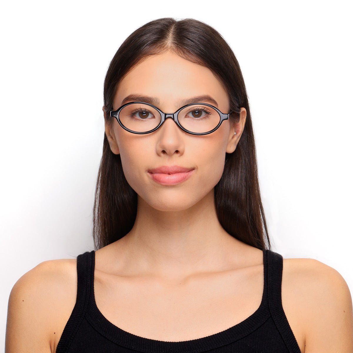 Óculos Oval I11 Preto em modelo com rosto médio.