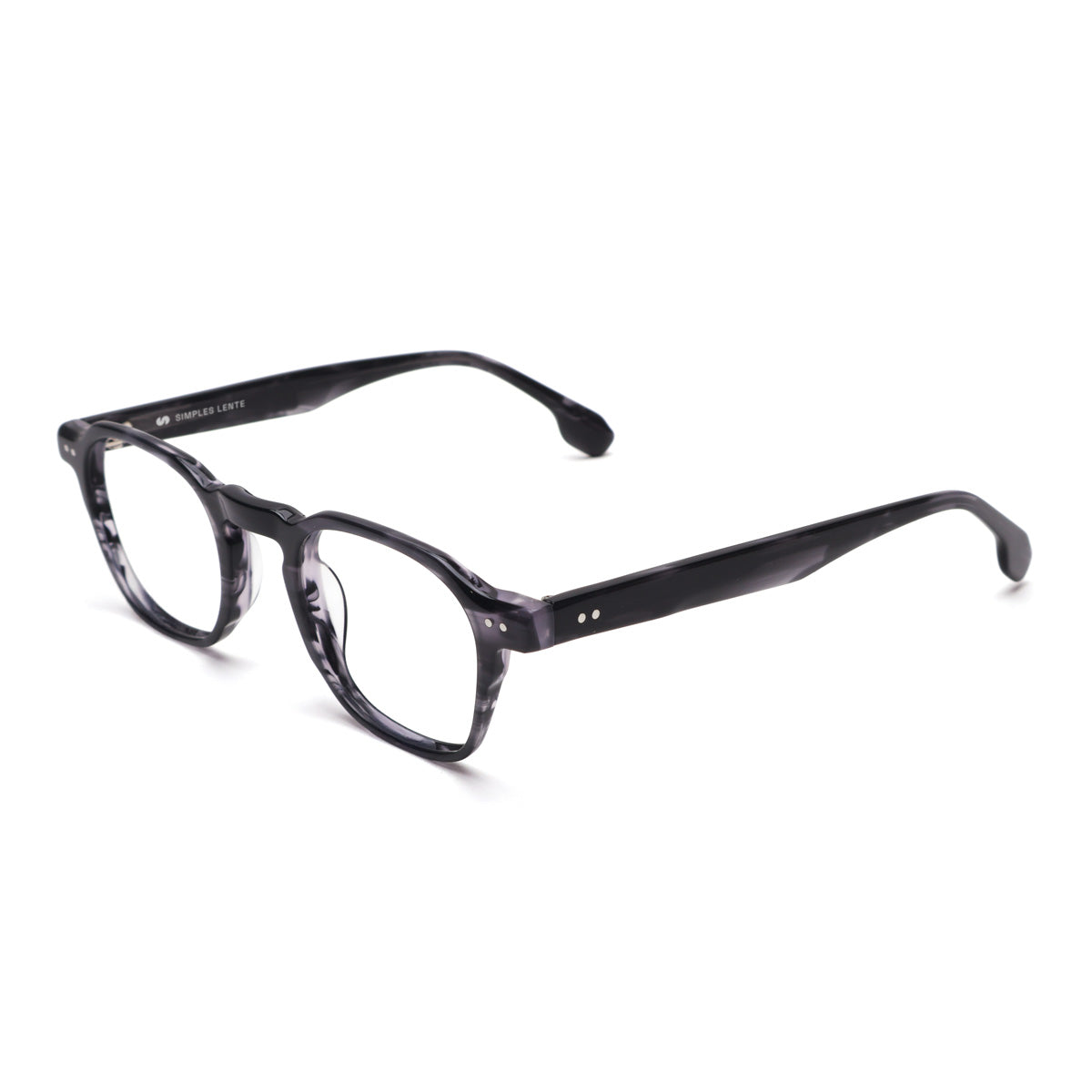 Óculos de Acetato Premium na cor preto com detalhes cinza em estilo granito.