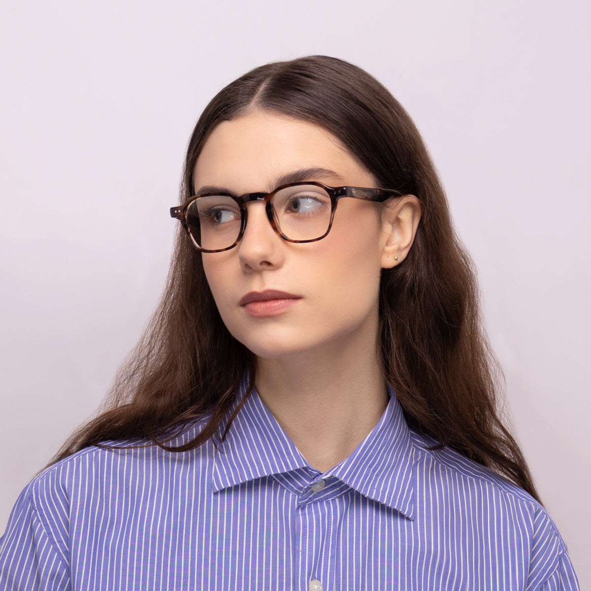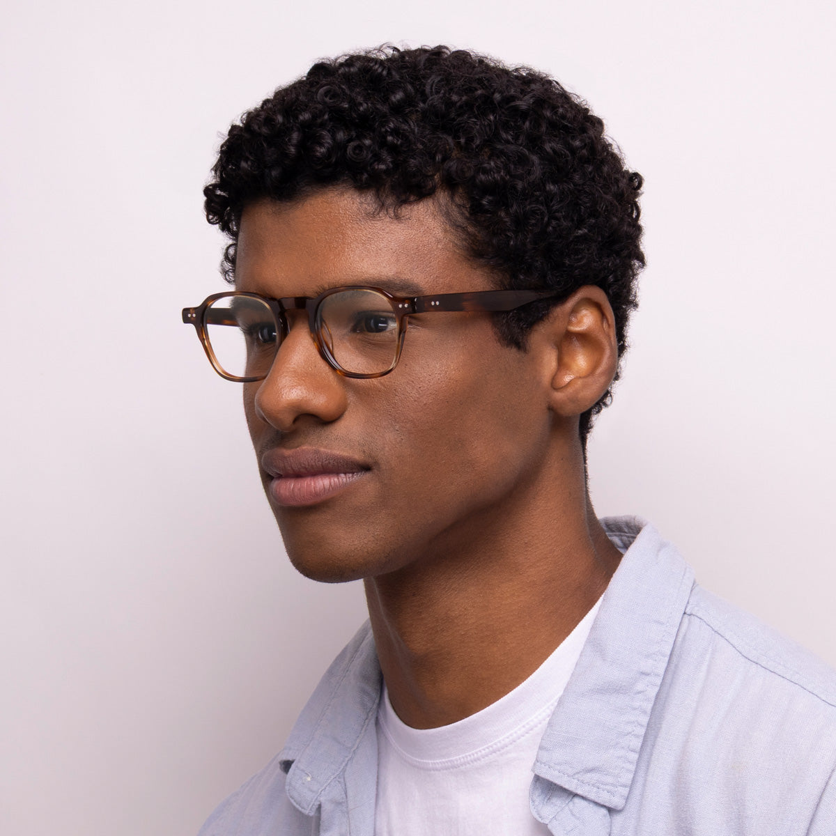 Óculos Quadrado E13 Tartaruga em modelo com rosto médio.