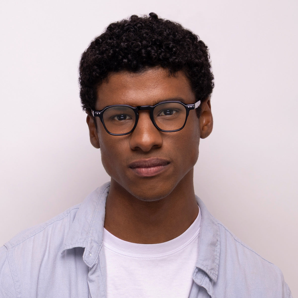 Óculos Quadrado Pequeno F2 Preto em modelo com rosto médio.