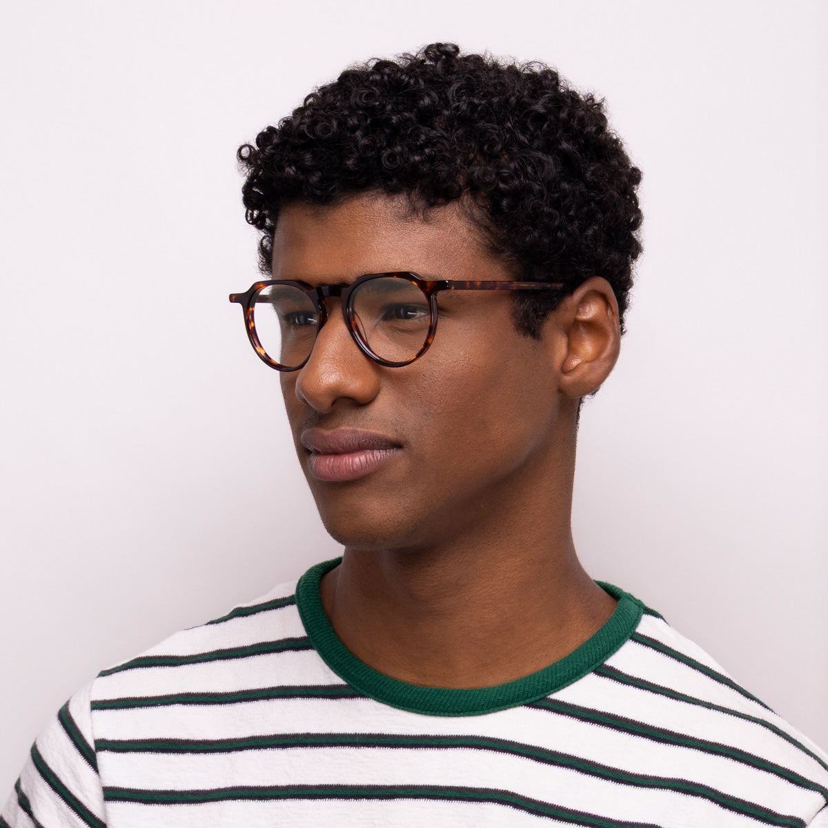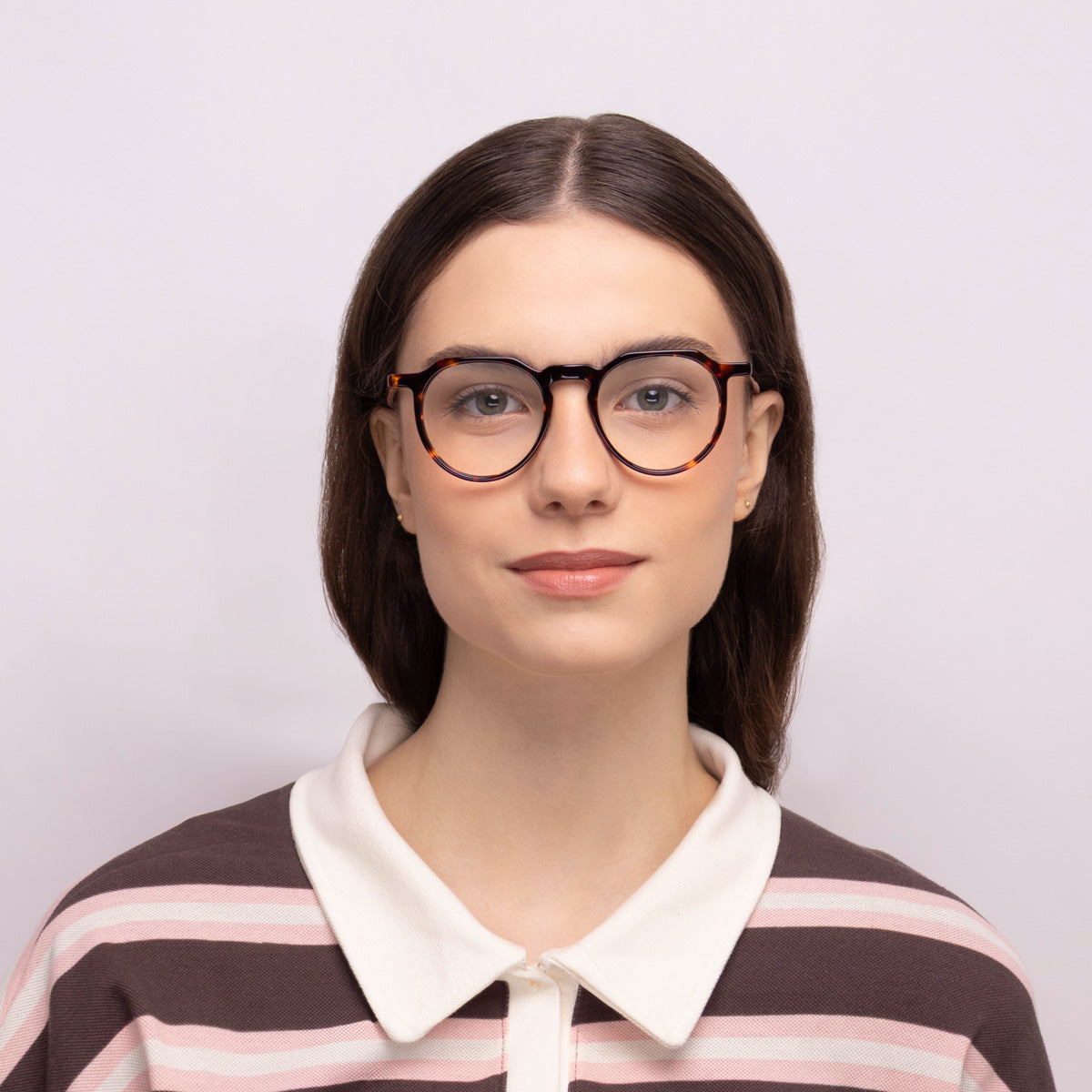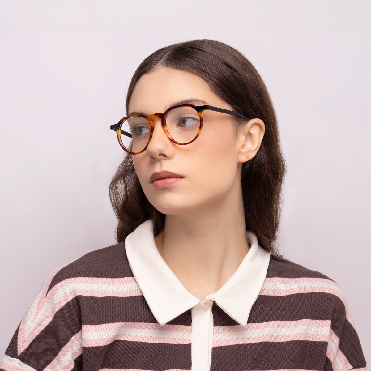 Óculos Redondo Médio B20 Tartaruga em modelo com rosto médio.