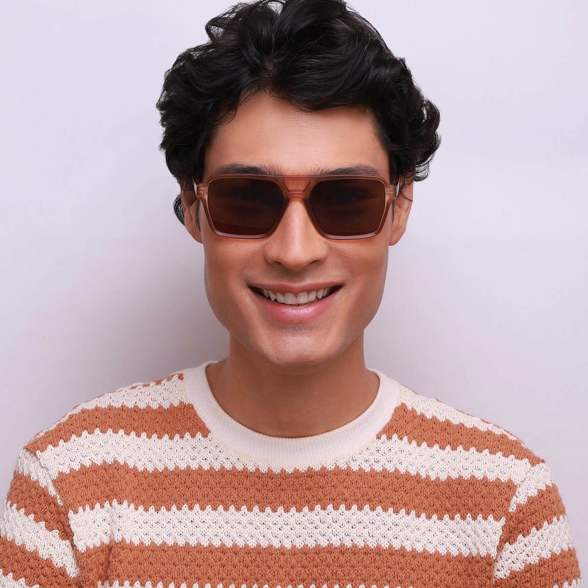 Óculos H2 Caramelo Fosco em modelo com rosto médio.