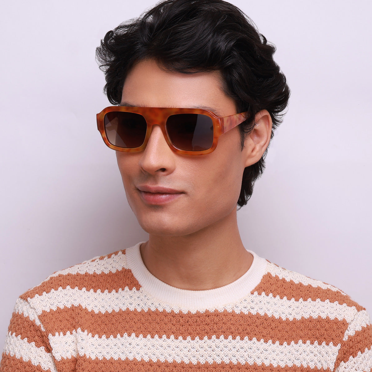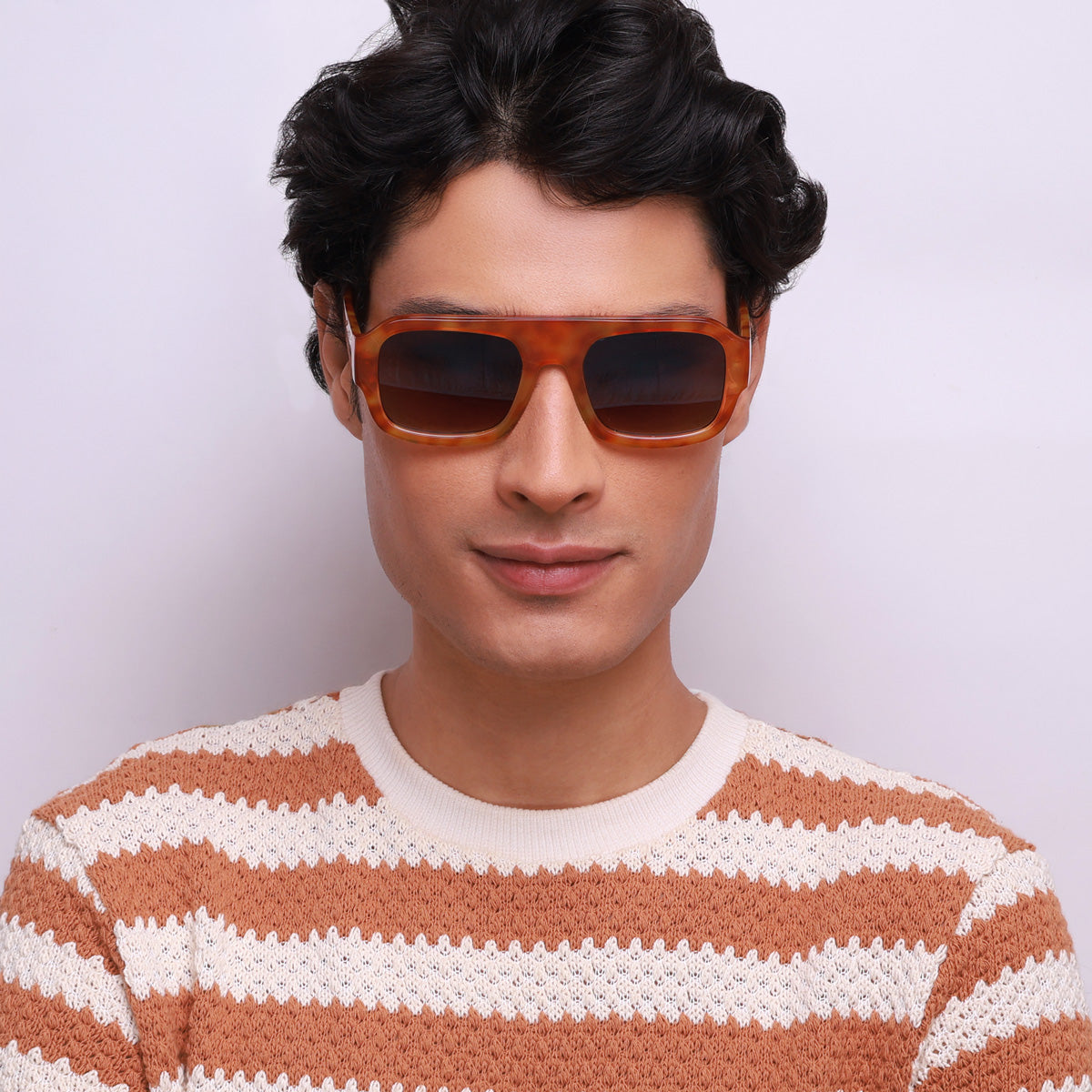 Óculos Aviador H4 Havana em modelo com rosto grande.