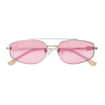 Óculos de metal levemente oval, de tamanho médio. Leve e versátil, seu design icônico apresenta uma estrutura resistente e confortável. Conta com plaquetas flexíveis de silicone e ponteiras de acetato nas hastes, garantindo um ajuste preciso para diferentes formatos de rosto e nariz.