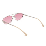 Óculos de metal levemente oval, de tamanho médio. Leve e versátil, seu design icônico apresenta uma estrutura resistente e confortável. Conta com plaquetas flexíveis de silicone e ponteiras de acetato nas hastes, garantindo um ajuste preciso para diferentes formatos de rosto e nariz.