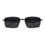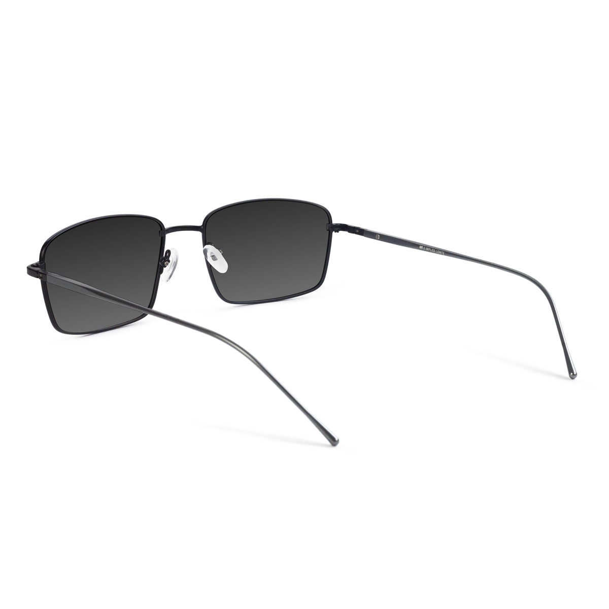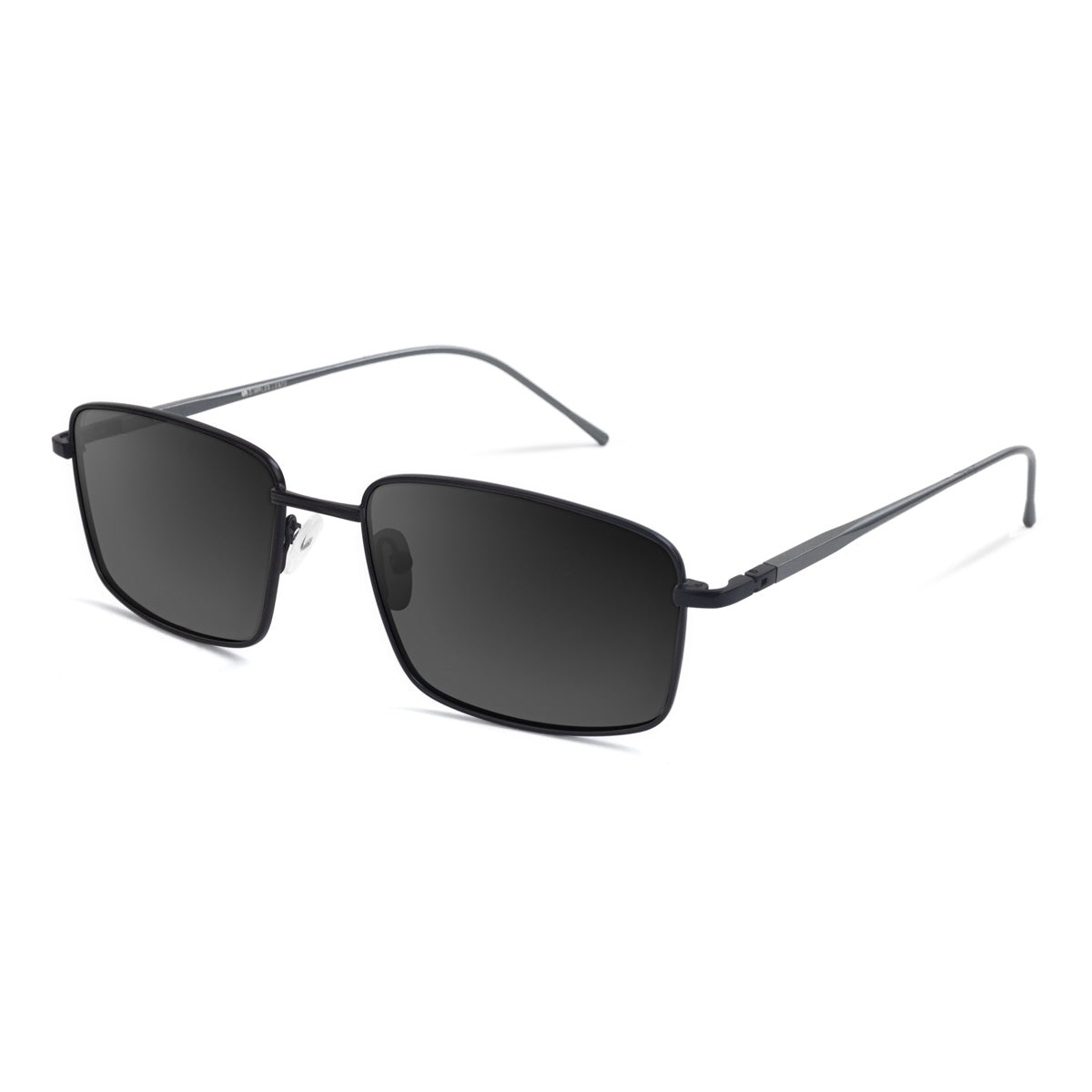 Óculos de metal titanium leve e discreto com design quadrado clássico. Possui plaquetas flexíveis de silicone e ponteira de acetato na haste que permite se adaptar bem a diferentes rostos e narizes.