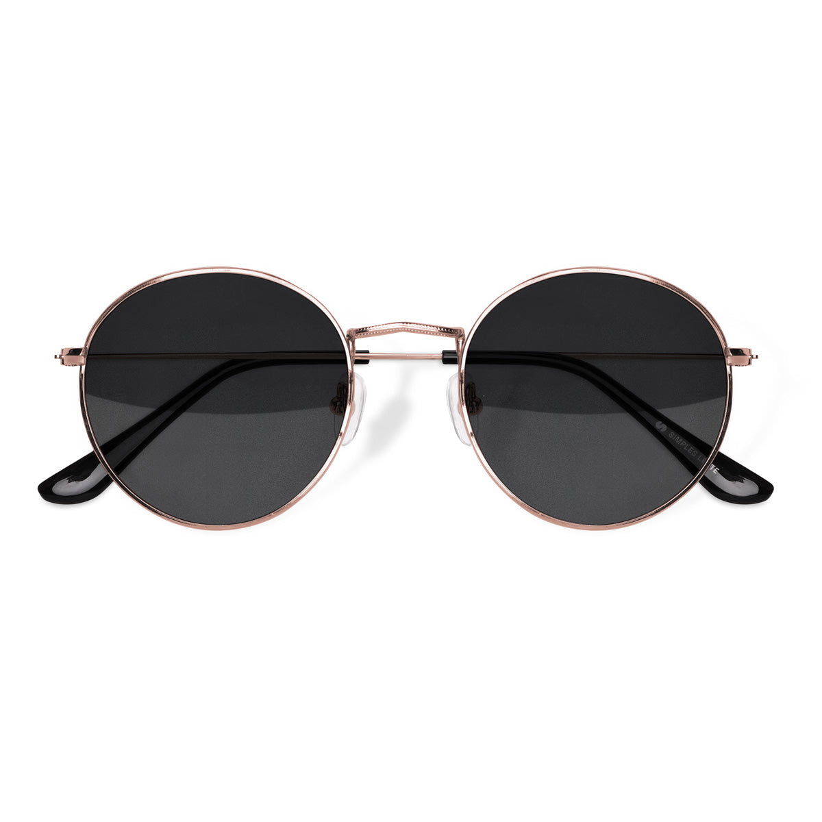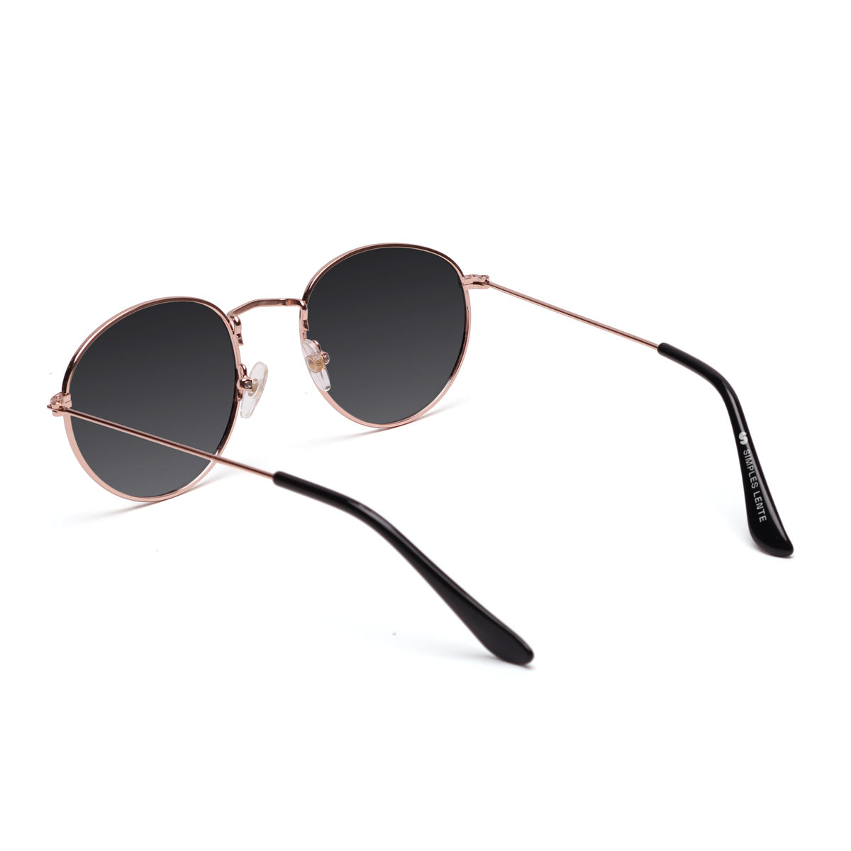 Óculos em metal leve e resistente, com design redondo clássico e atemporal. Equipado com plaquetas flexíveis de silicone e ponteiras de acetato nas hastes, oferece excelente adaptabilidade e conforto para diversos tipos de rosto e formatos de nariz.