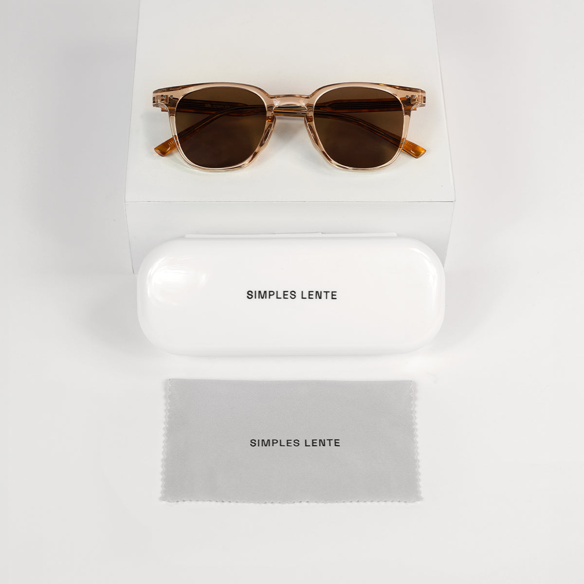 Cada par de óculos Simples Lente acompanha um estojo rígido, uma flanela de microfibra e um cartão de receita para que você possa consultar seu grau e tê-lo à disposição sempre que precisar encomendar outro par.