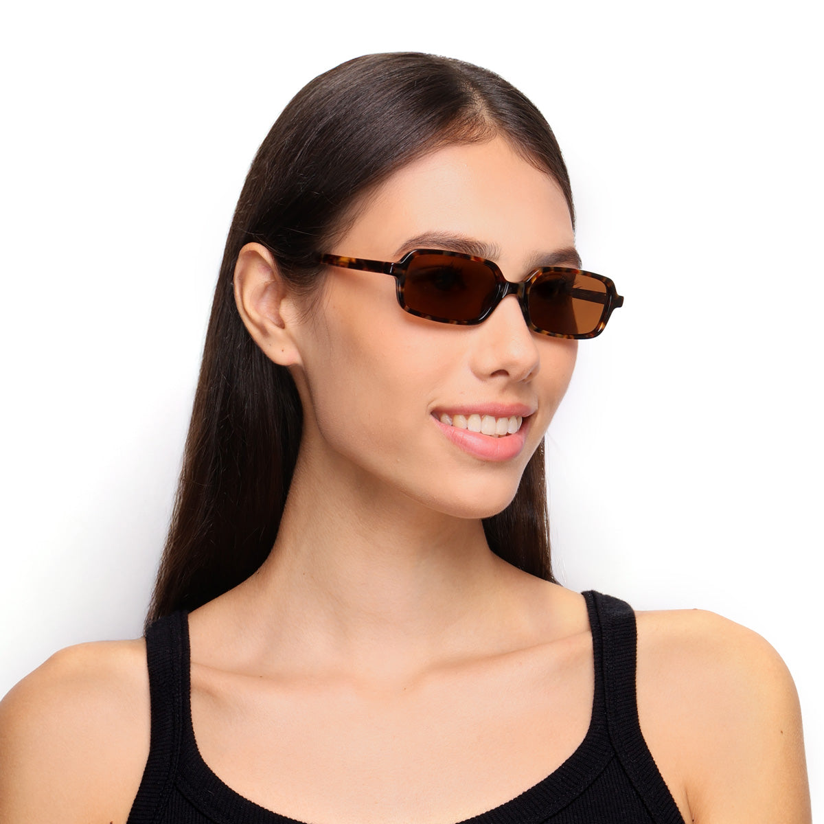 Óculos Retangular J6 Tartaruga em modelo com rosto médio.